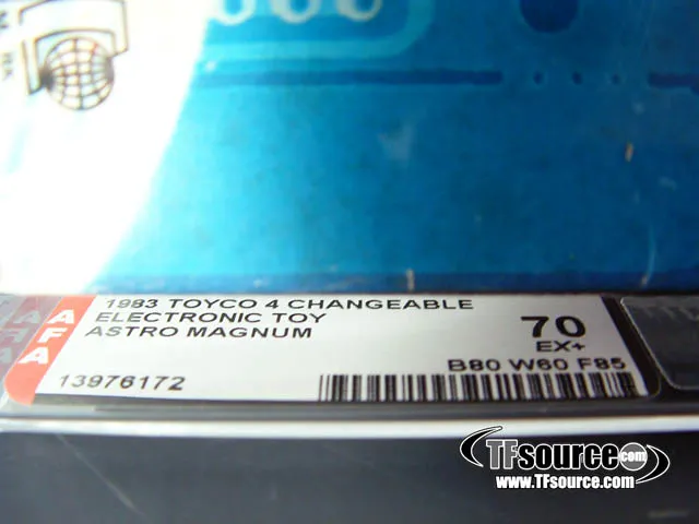 The true origins of Shockwave do not lie within the Takara/Hasbro lineage, but instead Shockwave was first issued by a Japanese company known as Toy Co and this is the very first release of Shockwave in his pre-Transformers form, still factory sealed in ToyCo packaging as Astro Magnum! MISB AFA G1 Shockwaves can fetch several thousand dollars, and this is the only recorded example of a factory sealed Grey Shockwave Astro Magnum in the AFA records. This is a great piece of vintage pre-transformers history, as this is the grey pre-Transformers version of Shockwave from the 70's, and the AFA graded an impressive 70 Excellent+ rating! Comes still sealed in its shrink wrap, and the AFA was able to grade this figure determining it has never been opened since leaving the factory back in the 70's! An amazing feat for such an impressive and rare piece.