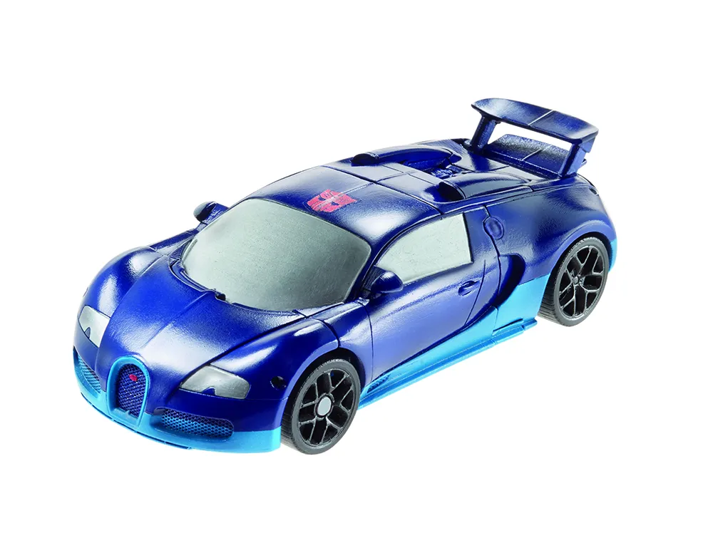 Part of the second wave of Power Battlers, Strafe features a simple transformation from a blue 2013 Bugatti Veyron Grand Sport Vitesse into a robot. In robot mode, squeezing Drift's legs together causes him to rotate at the waist for a sword slash attack.