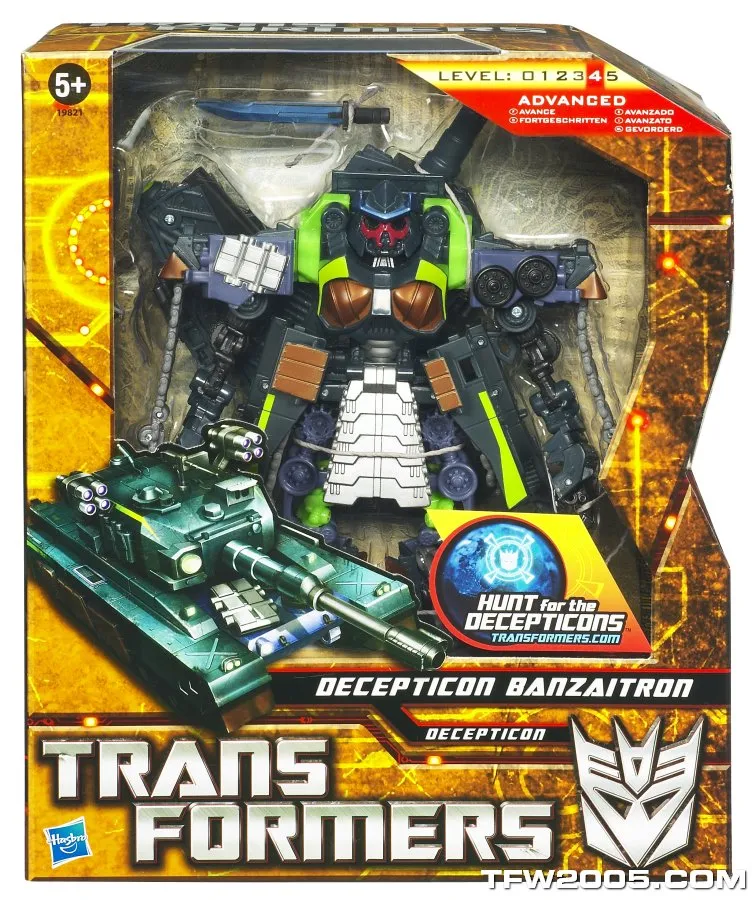 Transformers Hunt for the Decepticons Decepticon Banzaitron is a Voyager Class scaled figure that transforms from Tank to robot and back.