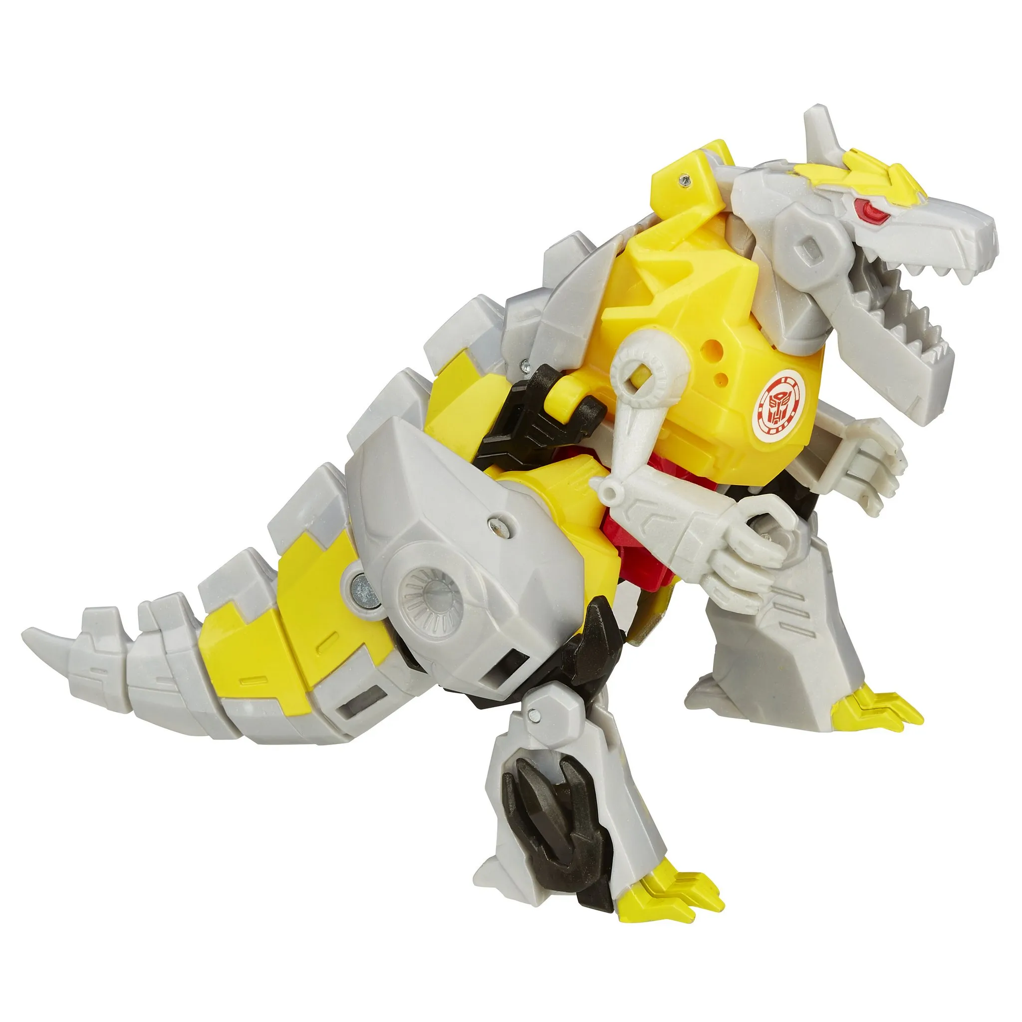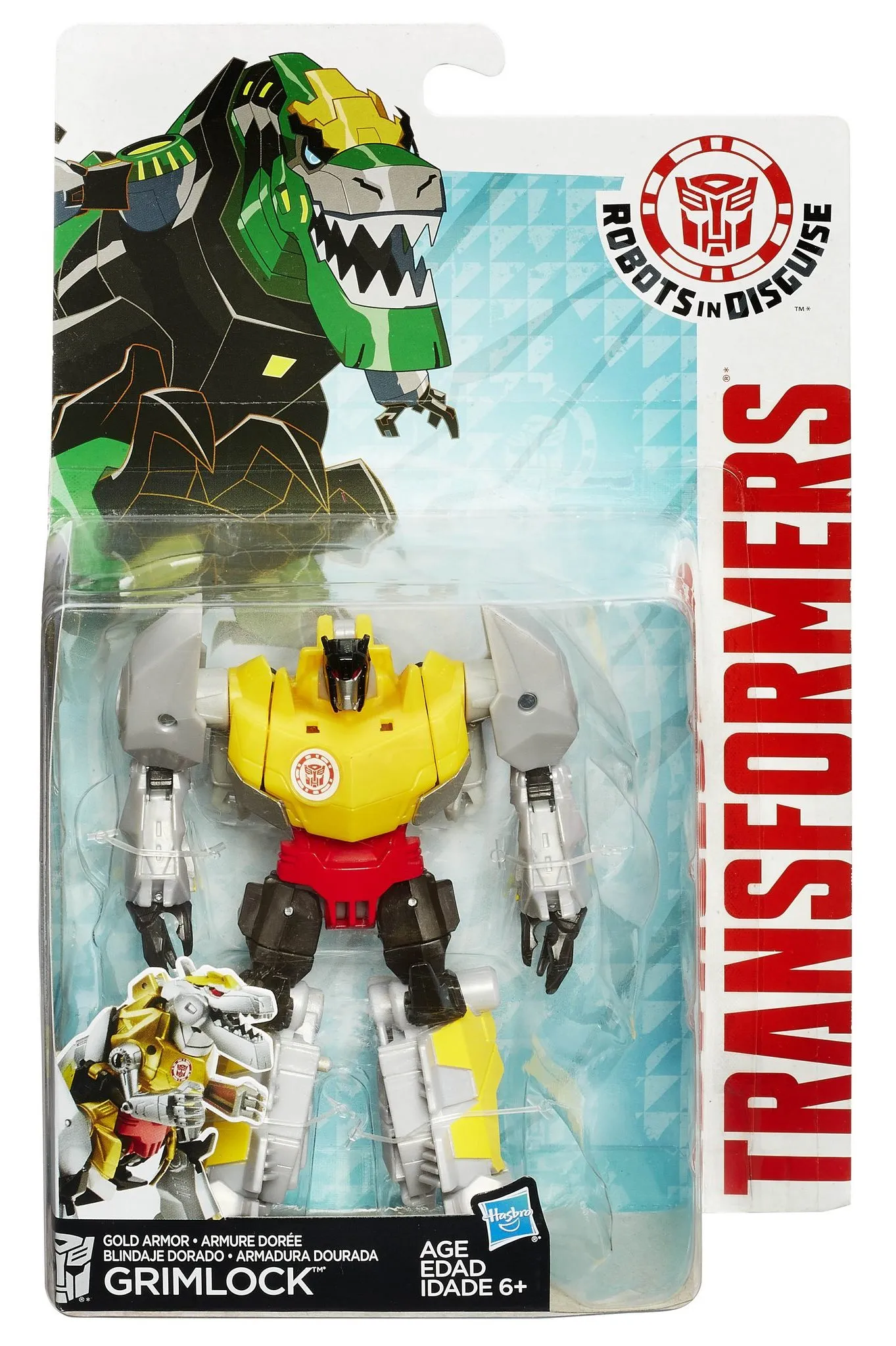 Transformers Robots in Disguise Gold Armor Grimlock is Warrior class and transforms from Tyrannosaurus Rex to robot and back.