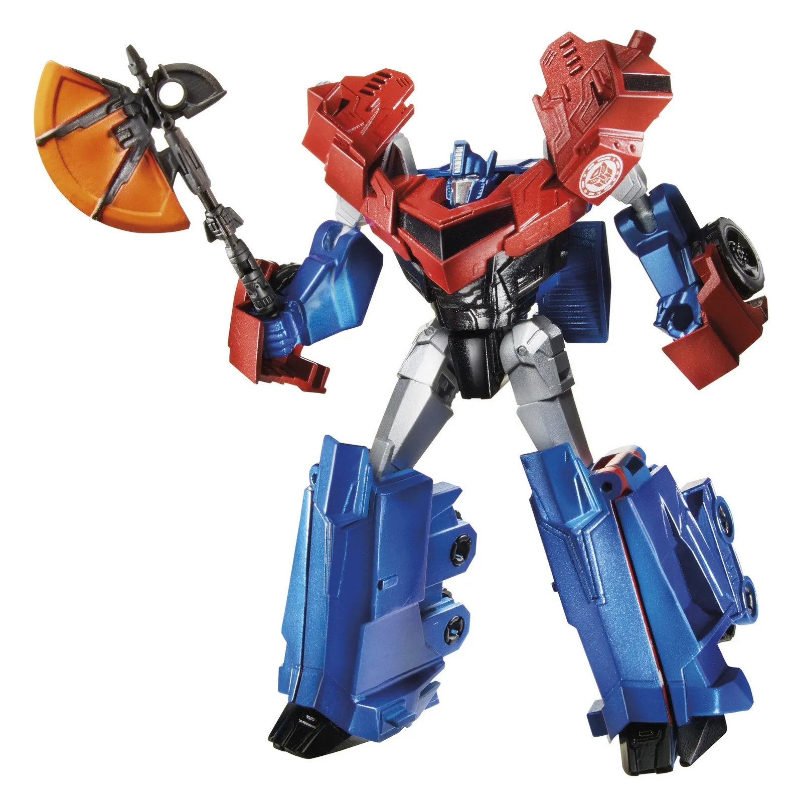 Transformers Robots in Disguise Optimus Prime is Warrior class and transforms from Semi Truck And Trailer to robot and back.