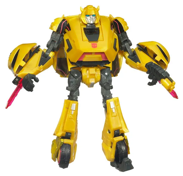 Cybertron Bumblebee is part of the Transformers Generations toyline of Transformers figures. Transformers Generations Cybertron Bumblebee is Deluxe Class scaled, stands 5.5-inches tall in robot mode and taransforms from Futuristic Car to robot and back.