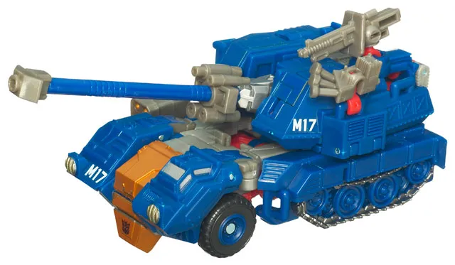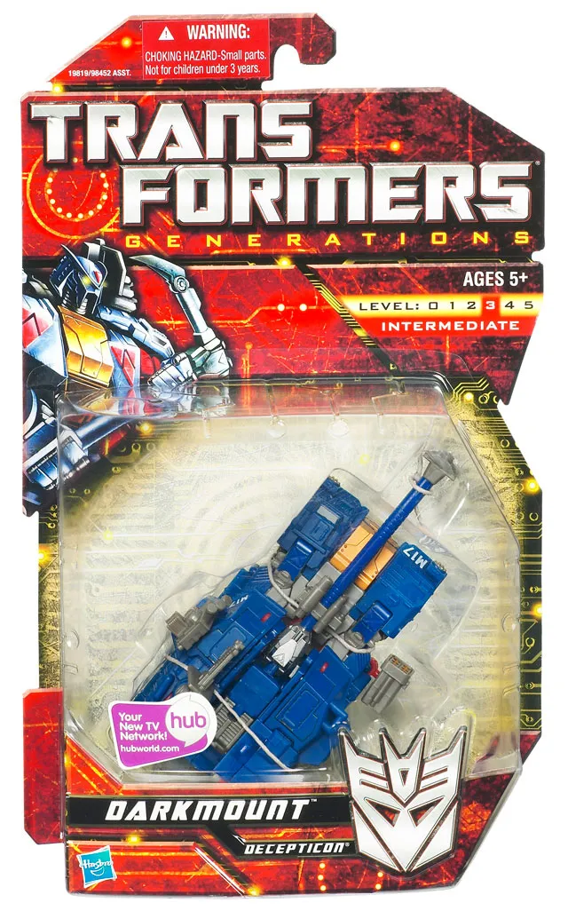 Darkmount is part of the Transformers Generations toyline of Transformers figures. Transformers Generations Darkmount is Deluxe Class scaled, stands 5.5-inches tall in robot mode and taransforms from Tank to robot and back.
