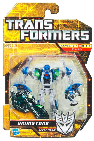 Transformers Hunt for the Decepticons Brimstone is a Scout Class scaled figure that transforms from Motorcycle to robot and back.