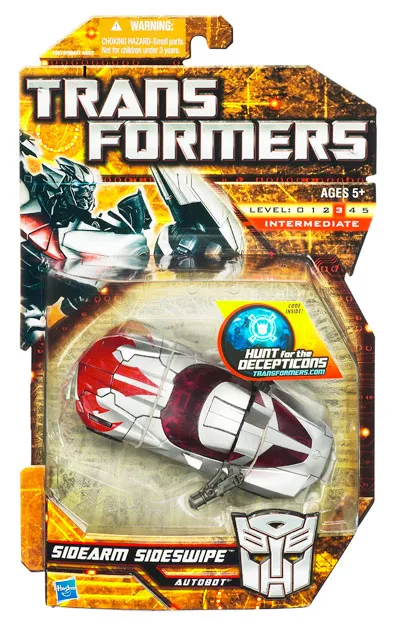 Transformers Hunt for the Decepticons Sidearm Sideswipe is a Deluxe Class scaled figure that transforms from Sports Car to robot and back.