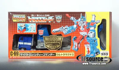 The "Diaclone" or Blue Ultra Magnus Reissue as some call him, is not actually an e-hobby exclusive but an exclusive recolor available as a Toy Festival Exclusive, limited to 1500 pieces. A color scheme in line with the Diaclone Prime was used, and is otherwise un-noteworthy in terms of the packaging, stickers and instructions inside the box. The sticker on the outside of the piece does say "Old Style Version" in Japanese, but the piece is otherwise and unfortunately identical to the Japanese Reissue Ultra Magnus in terms of the packaging.