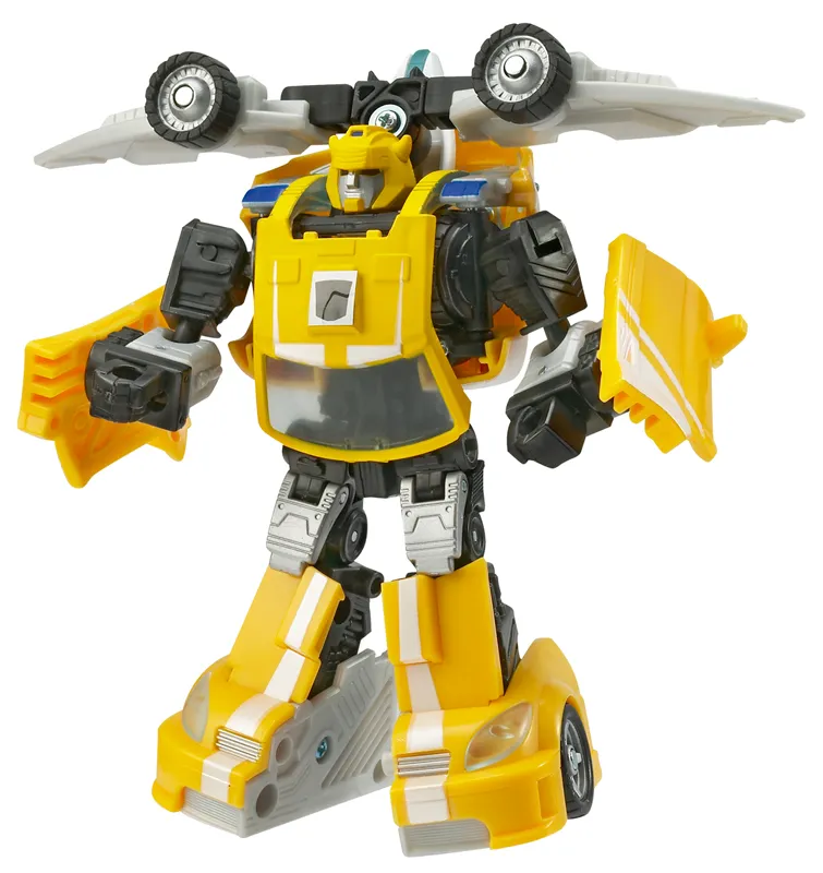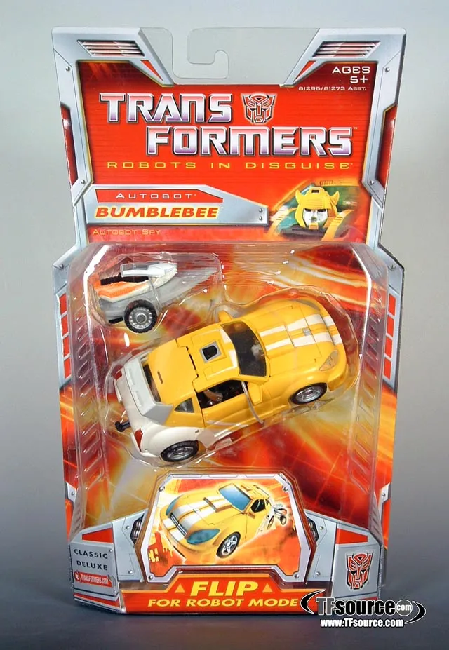 Transformers Classics Robots in Disguise Deluxe Class Bumblebee transforms from a Sports Car to robot and back. Bumblebee is a Deluxe Class scale Transformers figure that stands approximately 5.5-inches tall in robot mode.