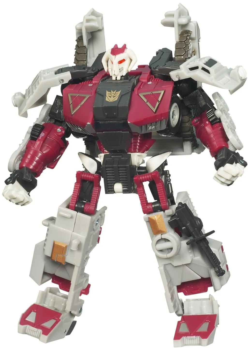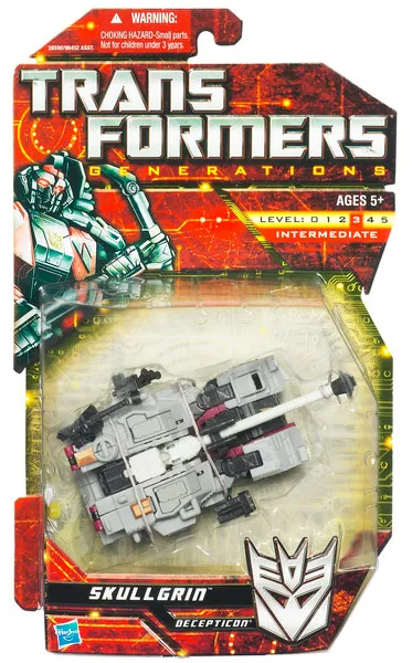 Skullgrin is part of the Transformers Generations toyline of Transformers figures. Transformers Generations Skullgrin is Deluxe Class scaled, stands 6-inches tall in robot mode and transforms from Tank to robot and back.