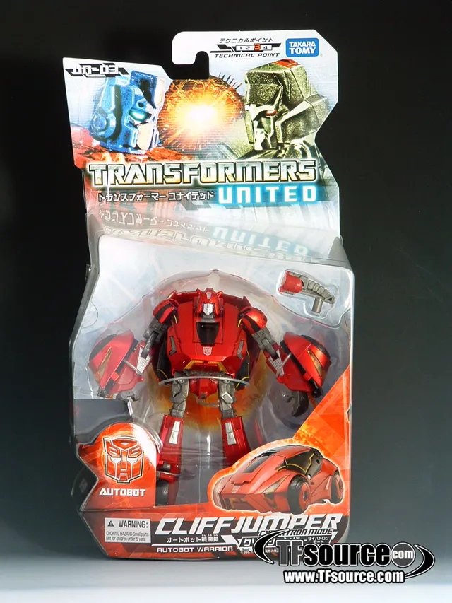 UN-03 Cliffjumper Cybertron Mode is a Japanese Exclusive figure released by Takara Tomy in Japan. UN-03 Cliffjumper Cybertron Mode is a Japanese recolored version of the US Generations Toyline available only in Japan.