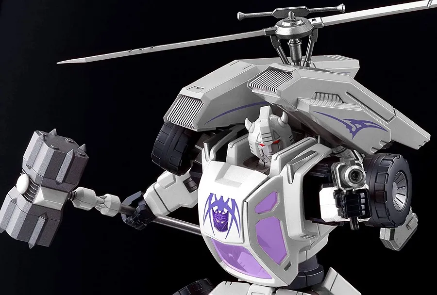 The model is about 5.5 inches tall and 6 inches tall with the helicopter engine equipped. The model has over 50 movable joints that let's you set any pose easily.