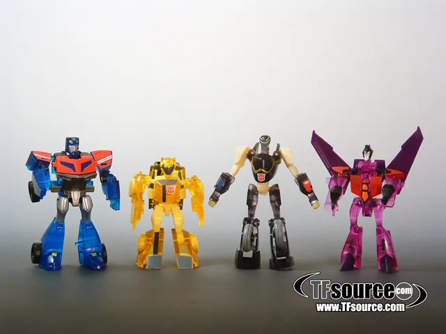 Set of 4 Figures, 1 x Translucent Optimus Prime, 1 x Translucent Bumblebee, 1 x Translucent Prowl, 1 x Translucent Skywarp