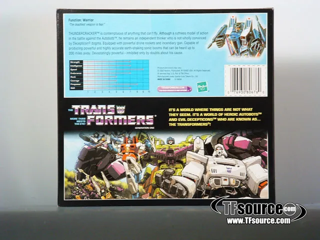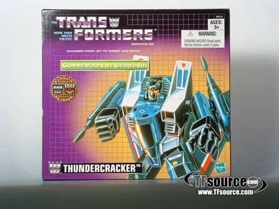 Transformers G1 Thundercracker is now reborn into your Transformers collection reissued in all of his Generation one glory and in minty fresh condition. Included are reissues of the original weaponry and accessories included back during the original relase of Transformers G1 Thundercracker.
