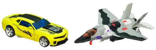 Transformers Hunt for the Decepticons Crash Landing Attack Exclusive Bumblebee vs Thrust is a Deluxe Class scaled figure that transforms from Sports Car to robot and back.