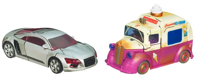 Transformers Hunt for the Decepticons High-Speed Spy Battle Exclusive Skids and Mudflap vs Sideways is a Deluxe Class scaled figure that transforms from Sports Car to robot and back.