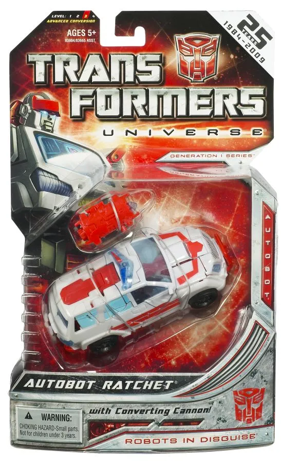 Transformers Universe Autobot Ratchet transforms from a Ambulance to robot and back, is a Deluxe Class-scaled figure and stands approximately 5.5-inches tall in robot mode.