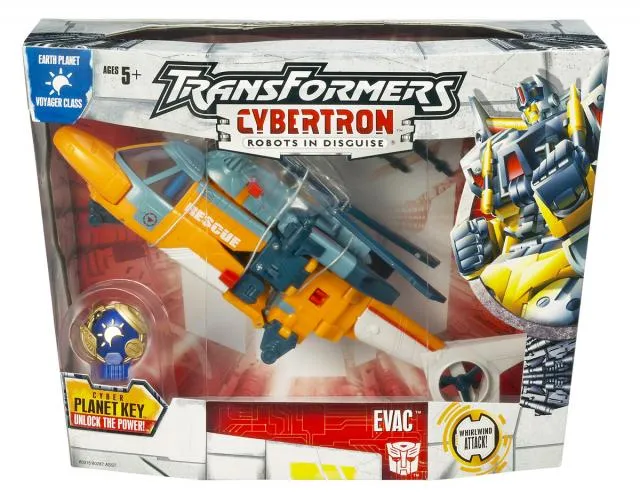 Transformers Cybertrron Evac is a Voyager Class scaled figure that stands 7-inches tall in robot mode and transforms from robot to Helicopter and back.