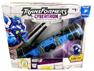 Transformers Cybertrron Mudflap is a Voyager Class scaled figure that stands 7-inches tall in robot mode and transforms from robot to Crane and back.