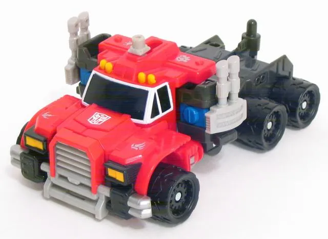 Transformers Cybertrron Optimus Prime is a Deluxe Class scaled figure that stands 5.5-inches tall in robot mode and transforms from robot to Semi Truck and back.