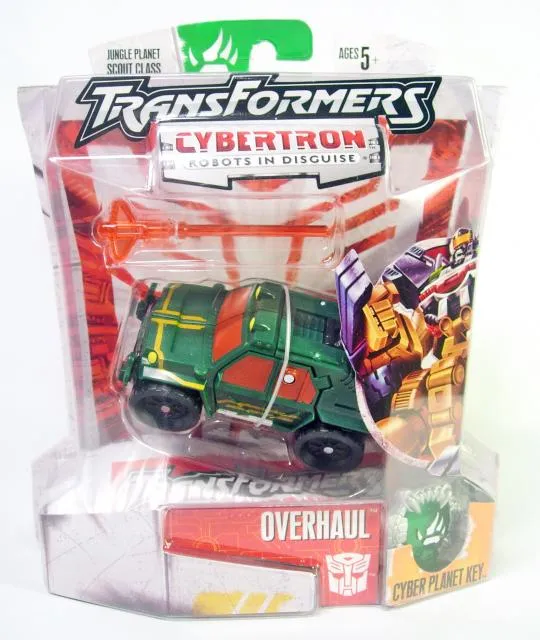 Transformers Cybertrron Overhaul is a Scout Class scaled figure that stands 4-inches tall in robot mode and transforms from robot to Vehicle and back.