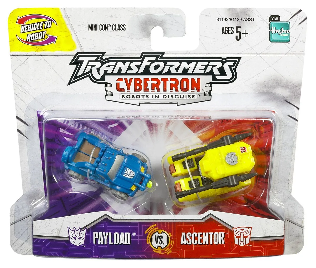 Transformers Cybertrron Payload vs Ascentor is a Mini-con scaled figure that stands 1-inches tall in robot mode and transforms from robot to Truck and back.