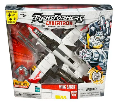 Transformers Cybertrron Wing Saber is a Ultra Class scaled figure that stands 9-inches tall in robot mode and transforms from robot to Plane and back.
