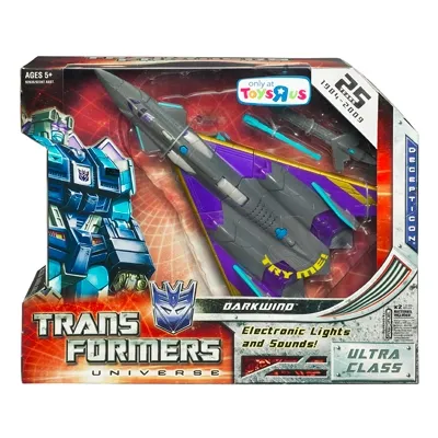 Transformers Universe Darkwind transforms from a Plane to robot and back, is a Voyager Class-scaled figure and stands approximately 7-inches tall in robot mode.