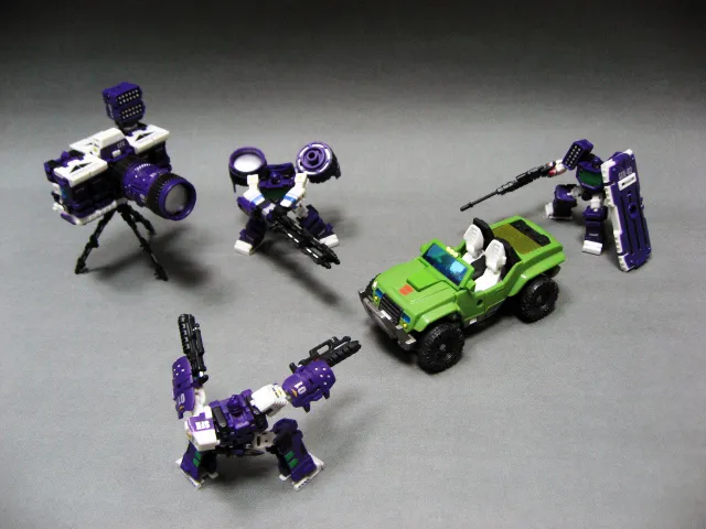Note: Classics Hound is not included as part of this set. This great custom set from Perfect Effect includes three robots that merge together to form a camera! SFX-01 Edge, SFX-02 Shield and SFX-03 Bullet all come as part of this great looking set. Note: Camera is non functional. Pictures are of prototype only and actual product may vary.