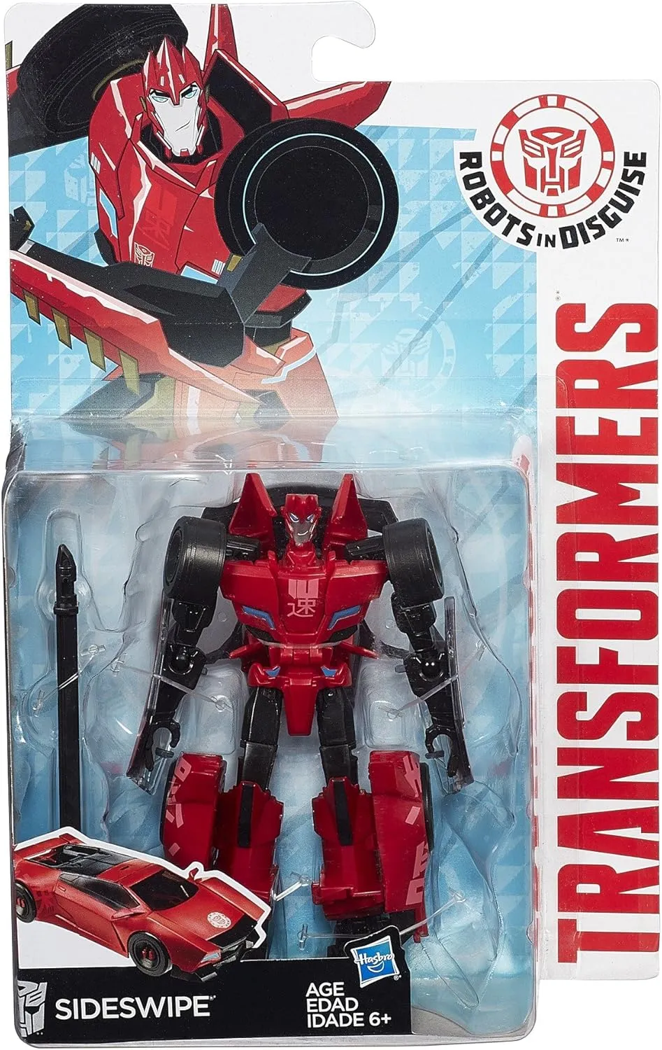 Transformers Robots in Disguise Sideswipe is Warrior class and transforms from Race Car to robot and back.