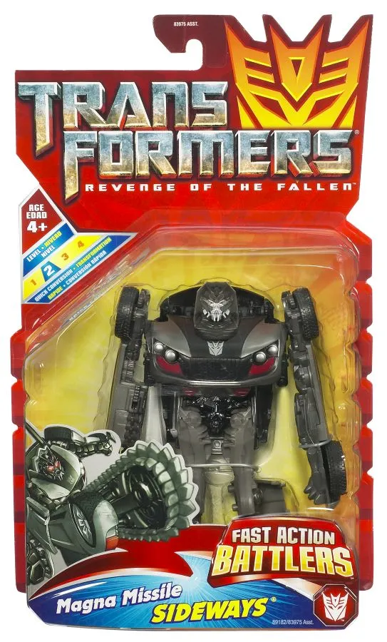Fast Action Battler Sideways jumps straight out of the Transformers the Movie live action film and into your collection! Sideways transforms from Sports Car to robot and back.