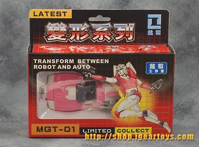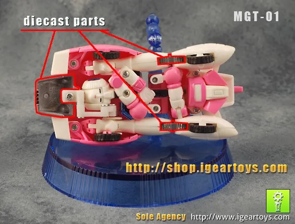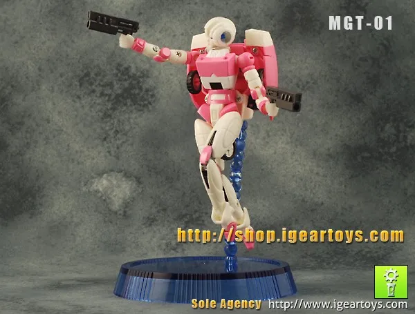 MGT-01 Delicate Warrior includes diecast parts, and comes with great looking packaging as shown. Fully transformable, includes a display base allowing you to pose her in various forms of battle and handguns as shown.