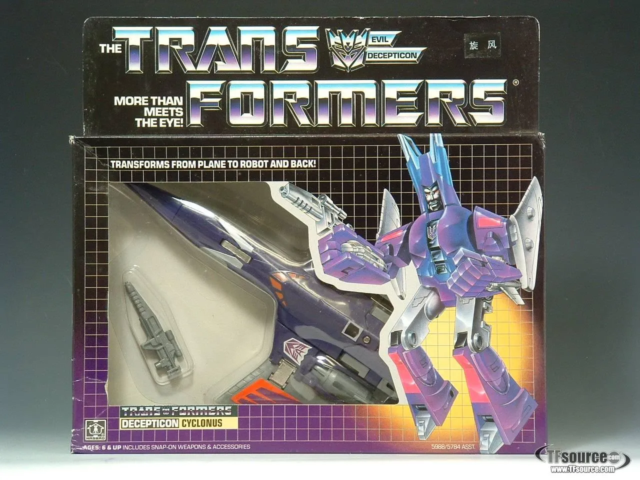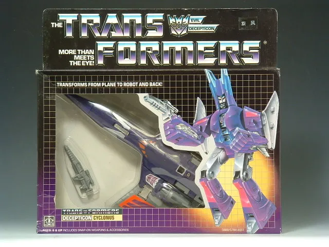 G1 Cyclonus is the loyal Second-In-Command of the Decepticon forces. Whether created from Skywarp or Bombshell, he is never-the-less a necessary addition to any Transformer fan's collection! Note: This is a vintage piece, not a KO or reissue. Box does have slight wear.