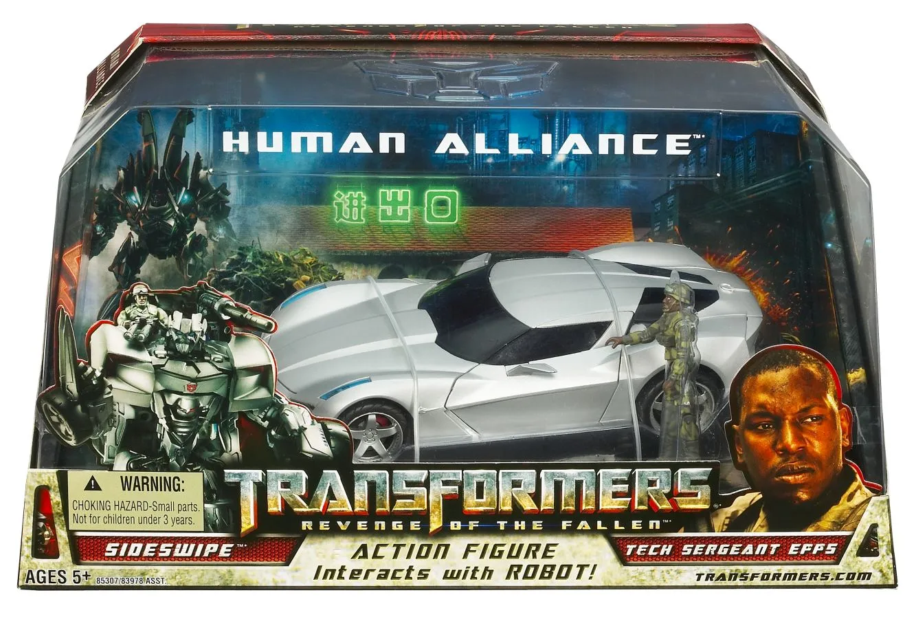 Sideswipe and Sergeant Epps jumps straight out of the Transformers the Movie live action film and into your collection! Sideswipe and Sergeant Epps is Deluxe Class scaled, stands 5.5-inches tall and transforms from Sports Car to robot and back.