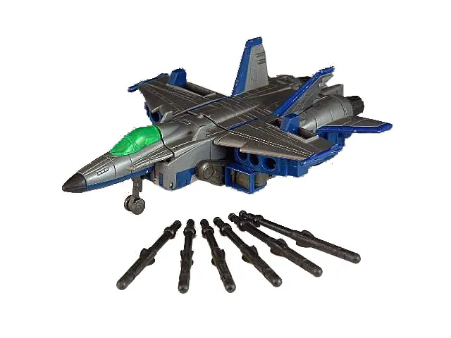 Transformers Beast Wars D-19 Autojetter is a Deluxe Class scaled figure that stands 5-inches tall in robot mode and transforms from robot to Fighter Jet and back.
