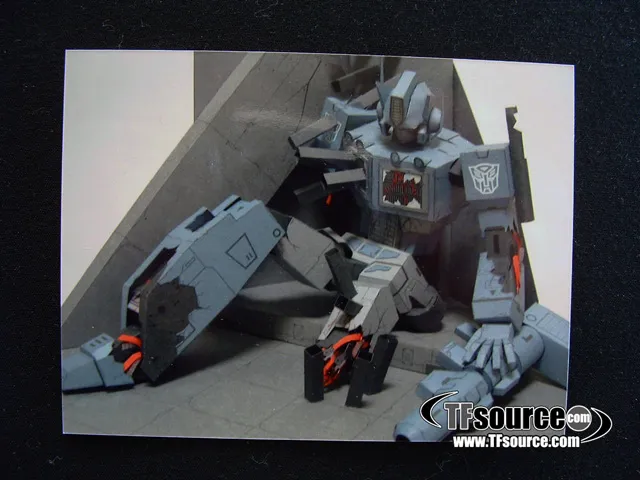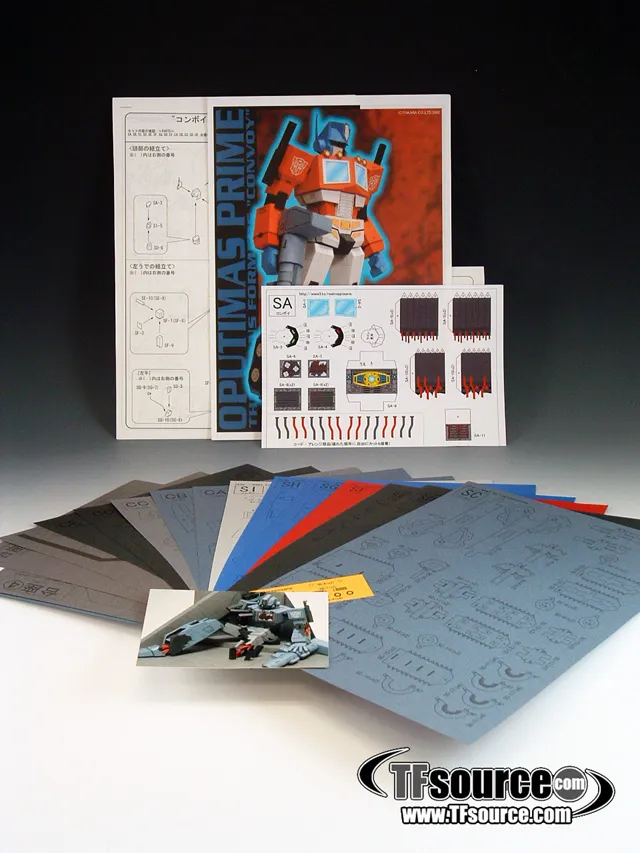 This is the famous paper convoy, convention exclusive! Designed by a fan, this piece includes instructions (in japanese) and all of the printed sheets of paper to assemble and relive the famous scene when Optimus Prime passes away from the Transformers movie. Still uncut and unassembled, this piece requires a very high level of skill to assemble and is extremely rare.