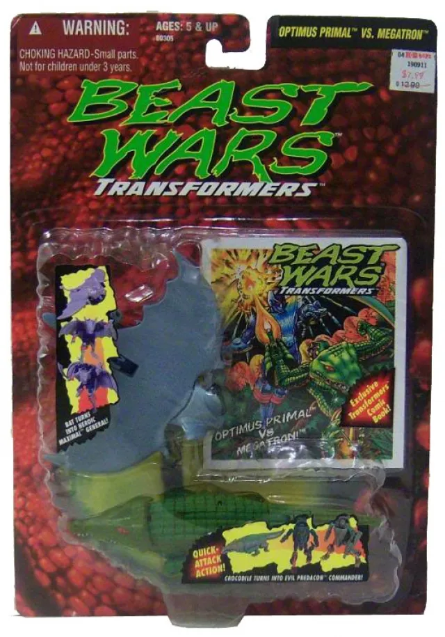 The Transformers: Beast Wars features the heroic Maximals vs. the evil Predacons in a battle for a primitive world where every figure in the toyline transforms from a robot to a beast. Accompanied by a CGI cartoon, Beast Wars has Optimus Prime and Megatron reborn with their new Beast forms, and adds new scales to the classes of Transformers: Basic Class, Deluxe Class, Mega Class, Ultra Class and even Super Class.