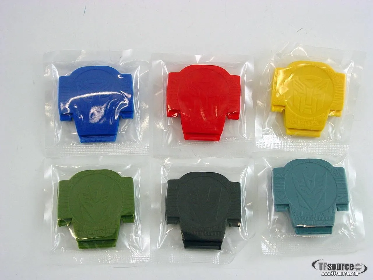 This is a complete set of the Lunchables promotional tie-in to the 2007 "Transformers" film. Featuring Optimus Prime, Bumblebee, Ironhide, Megatron, Starscream, & Blackout.