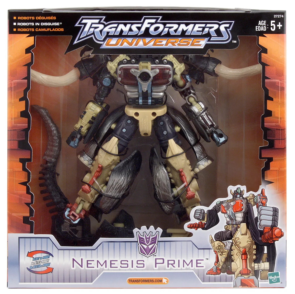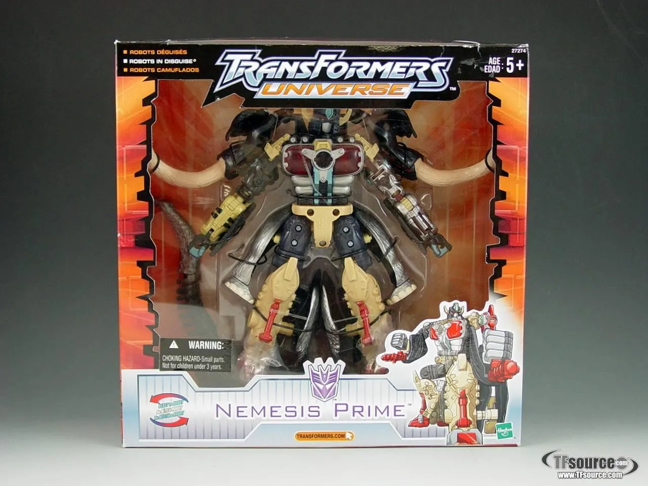 Transformers Universe Nemesis Prime Exclusive transforms from a Mammoth to robot and back, is a Ultra Class-scaled figure and stands approximately 8-inches tall in robot mode.