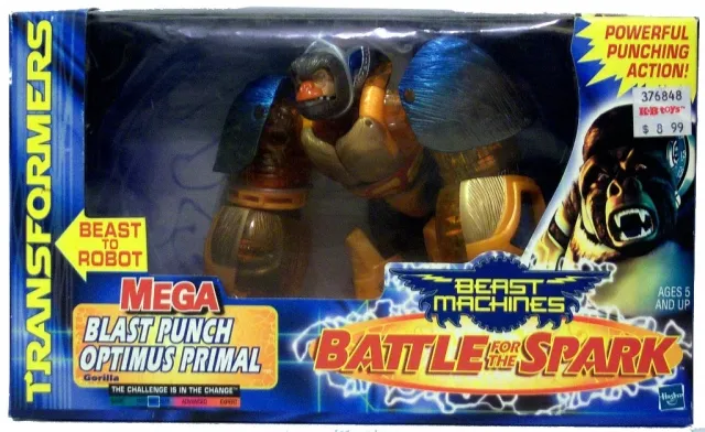 Mega Class Blast Punch Opimtus Primal transforms from an Gorilla to robot and back. Blast Punch Opimtus Primal is Mega Class and stands 10-inches tall in robot mode.