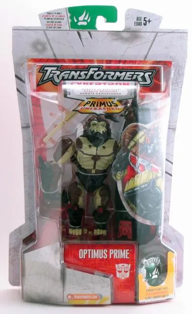 Transformers Cybertrron Optimus Prime Jungle Planet Version is a Deluxe Class scaled figure that stands 5.5-inches tall in robot mode and transforms from robot to Gorilla and back.