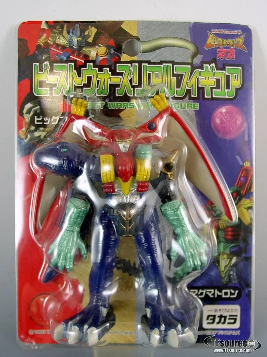 This piece is a die-cast non-transforming Japanese release of Magmatron in robot mode. It features a removable weapon that can store on the rear of the figure.