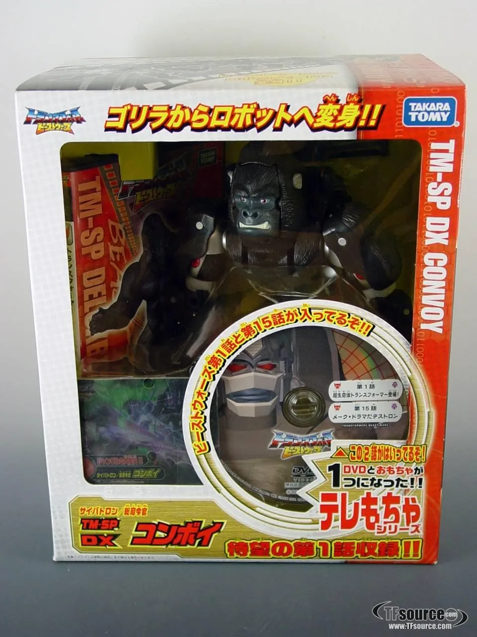 Transformers Beast Wars TM-SP Beast Convoy DX is a Ultra Class scaled figure that stands 10.0-inches tall in robot mode and transforms from robot to Gorilla and back.