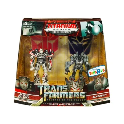 Transformers Titanium Rescue Ratchet and Blackout Exclusive Set of 2 Transformers Movie 3-Inch is part of the Titanium Robot Masters 3-Inch Die-cast Figure toyline.