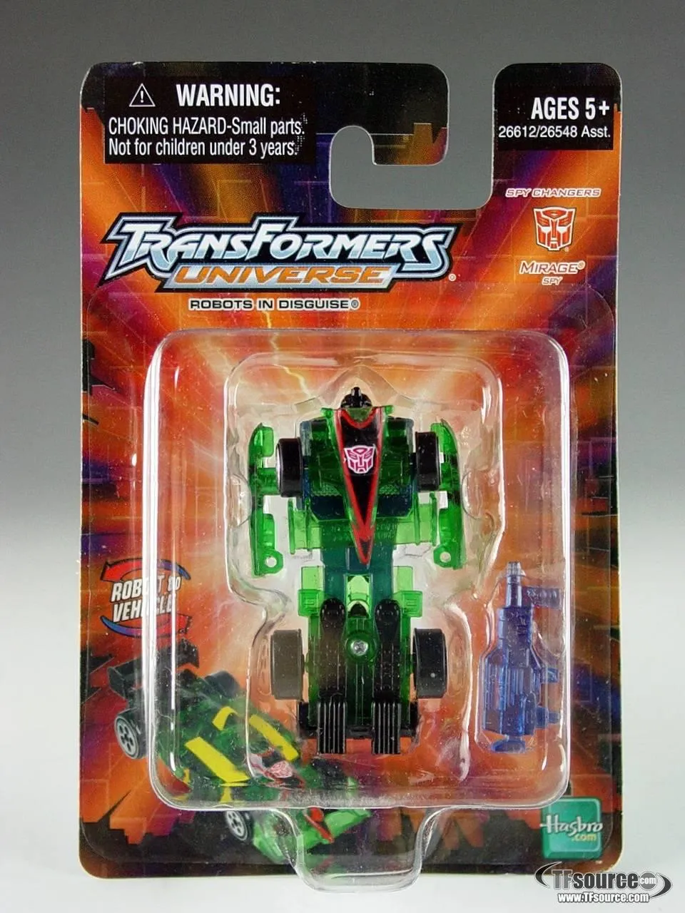 Transformers Universe Mirage Spy Changers transforms from a Race Car to robot and backand stands approximately 4-inches tall in robot mode.
