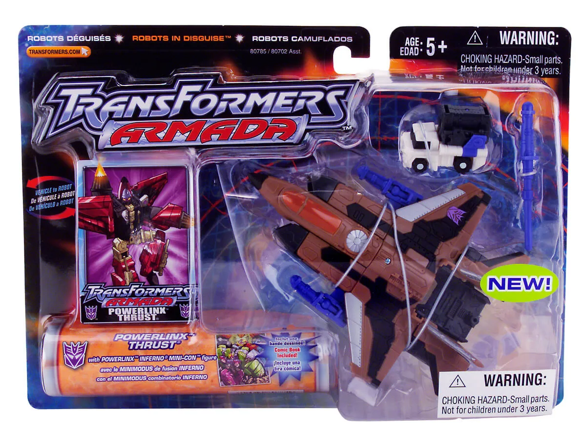 Armada (known as Micron Densetsu in Japan) was a Transformers series that ran from 2002 to 2004. Armada featured heroic Autobots and evil Decepticons doing battle on Cybertron over a race of humanoid sized partners called Mini-cons.