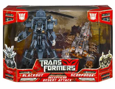 Add Transformers the Movie Blackout and Scorponok Decepticon Desert Attack to your collection today from TFSource: Your Source for Transformers Action Figures.