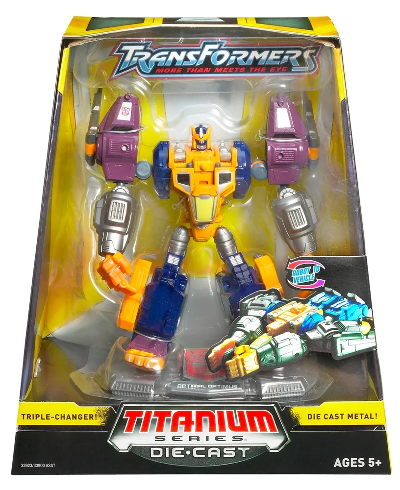 The Transformers Titanium Robot Masters Toyline Features 6-inch, non-transformable, die-cast figurines of Transformers characters from various past and present toy lines. The Titanium Series featured many properties, brands and characters in the toy line of partially die-cast figures produced under Hasbro's Galoob brand as a subdivision of Micro Machines.