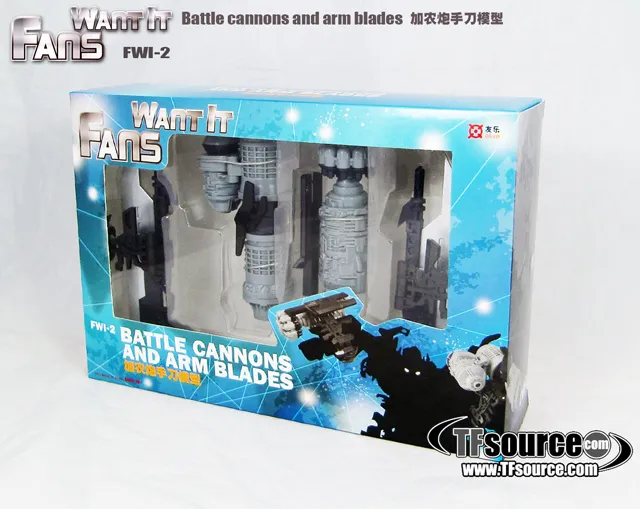 FWI-2 is an add on kit for DOTM leader class Ironhide. Included are two cannons and blades that can attach to his arms! Note: Leader Class Ironhide Figure Sold Separately. This is a 3rd party custom piece and not associated with Hasbro or Takara/Tomy