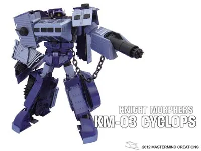 KM-03 Cyclops and Bonus Mini Sub is a Knight Morphe figure that is approximately Voyager Class Scale, stands 10.0-inches tall in robot mode and transforms from Battleship to robot and back.