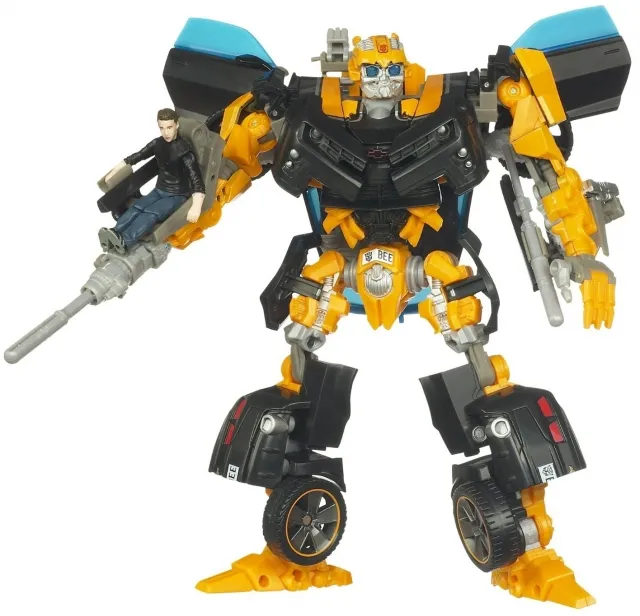 Bumblebee with Sam Witwicky jumps straight out of the Transformers the Movie live action film and into your collection! Bumblebee with Sam Witwicky is Deluxe Class scaled, stands 5.5-inches tall and transforms from Sports Car to robot and back.