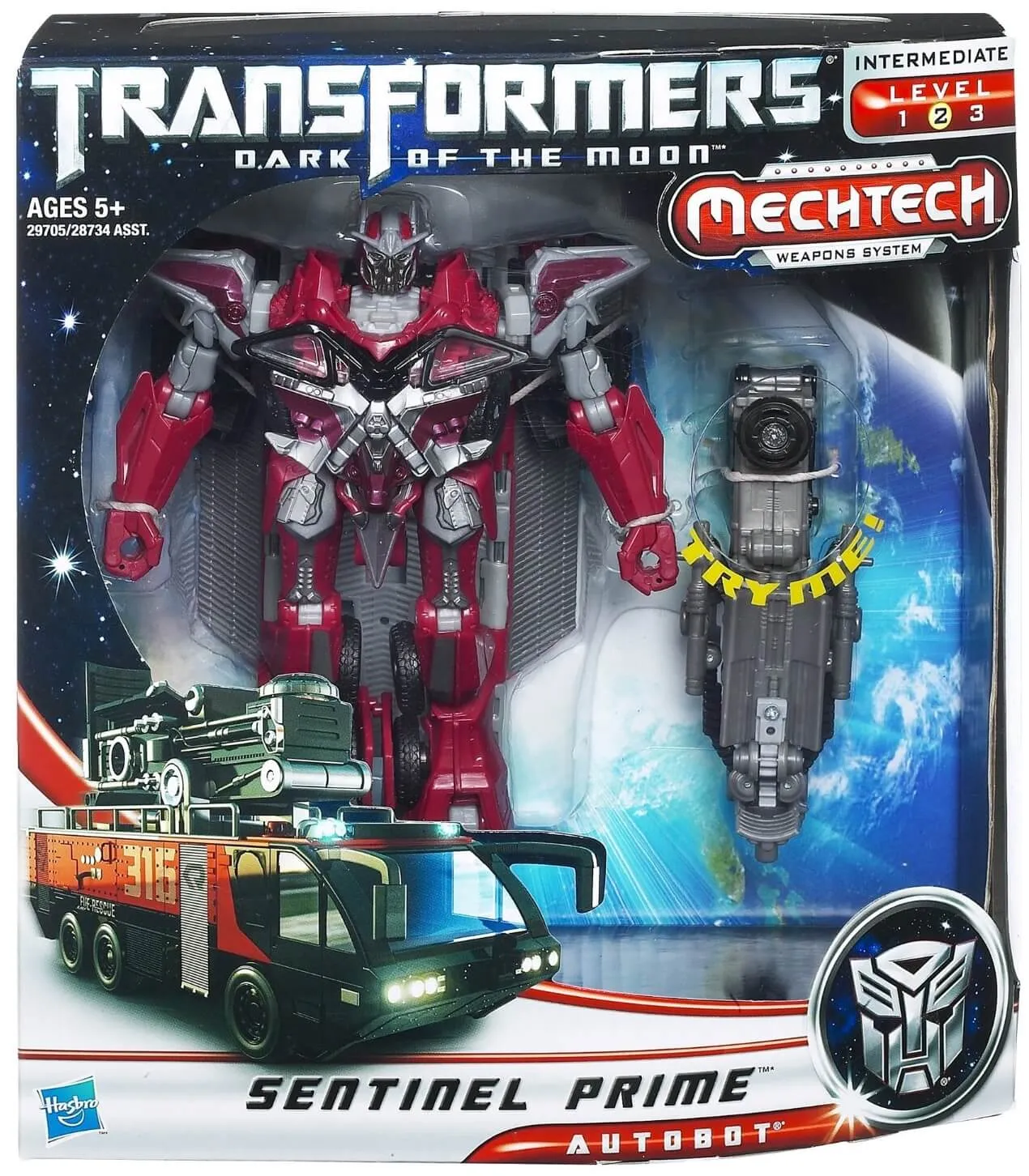 Sentinel Prime jumps straight out of the Transformers the Movie live action film and into your collection! Sentinel Prime is Voyager Class scaled, stands 7.0-inches tall and transforms from Fire Truck to robot and back.